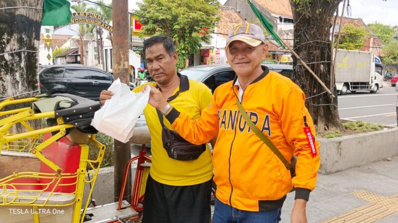 Aksi berbagi ini dipandu langsung oleh Muchsin, atau yang akrab disapa “Cak Lontong KW” oleh warga sekitar. Dengan gaya yang humoris dan penuh keakraban, tim panitia membagikan paket bingkisan kepada para pengguna jalan, pedagang kaki lima, dan masyarakat sekitar yang melintas di depan titik lokasi Jl. KH Ahmad Dahlan No. 107.