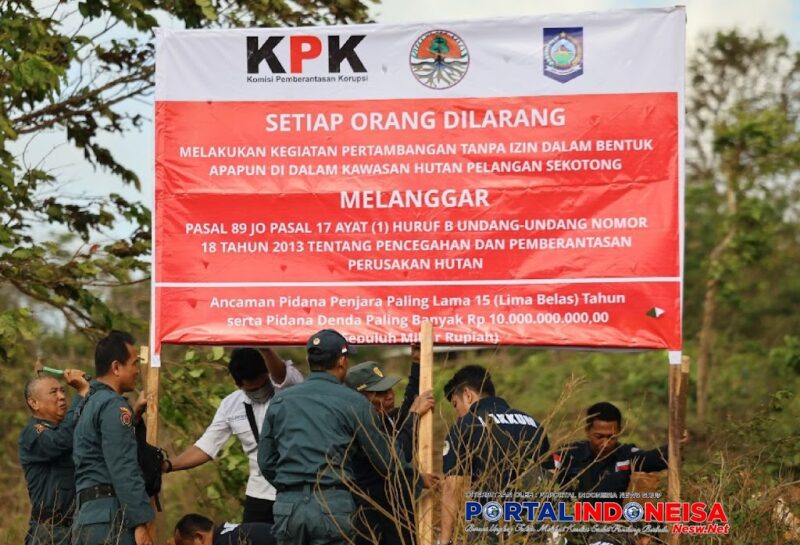 Tindakan Penegakan Hukum, Untuk menanggulangi masalah ini, KPK bersama dengan Balai Pengamanan dan Penegakan Hukum Lingkungan Hidup dan Kehutanan serta DLHK NTB akan memasang plang larangan di area tambang ilegal. Pelanggar akan dikenakan sanksi sesuai Pasal 89 jo Pasal 17 Ayat (1) Huruf B Undang-Undang Nomor 18 Tahun 2013 tentang Pencegahan dan Pemberantasan Perusakan Hutan, dengan ancaman pidana penjara hingga 15 tahun dan denda paling banyak Rp10 miliar.