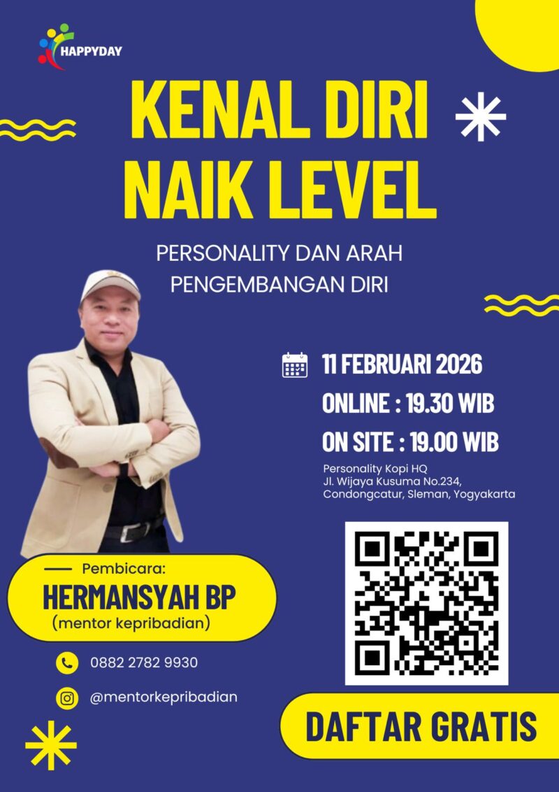 YOGYAKARTA | PortalindonesiaNews.Net – Di tengah hiruk-pikuk kesibukan dunia modern, banyak individu yang merasa terjebak dalam rutinitas tanpa memahami potensi asli yang mereka miliki. Menanggapi fenomena tersebut, Happyday menyelenggarakan sebuah sesi edukatif bertajuk “Kenal Diri Naik Level” yang berfokus pada pengenalan kepribadian sebagai kunci pengembangan diri.